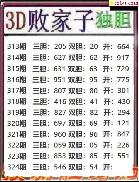 败家子独胆2025324期3d图谜