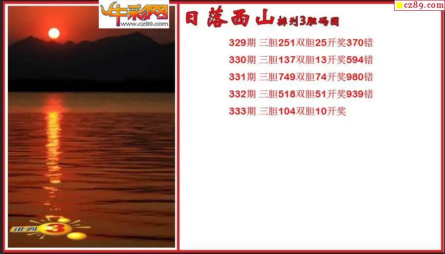 首页 > 排列3图谜 > 2025333期P3日落西山胆码图谜