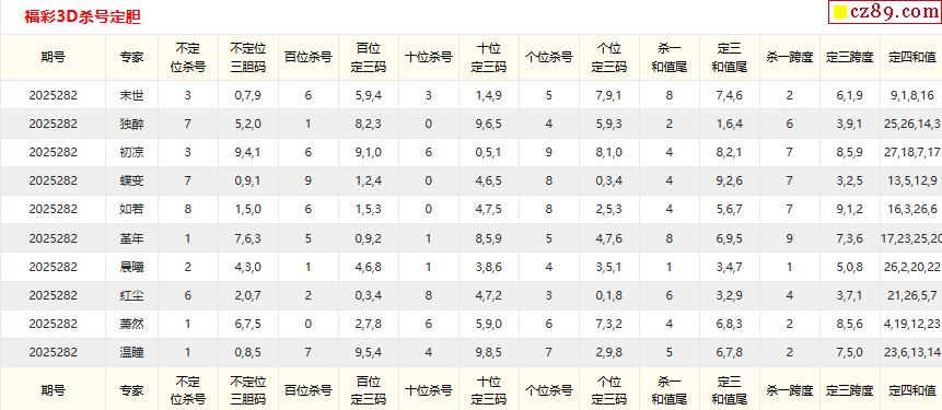 > 25年282期彩宝贝专家福彩3D杀号定码图表